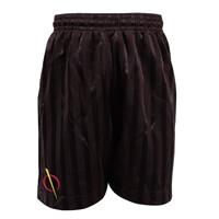 The PE short is black and made from 100% soft touch polyester with a drawcord. It has the school crest embroidered on the right leg. Measure the waist (just above the belly button) and select from sizes 22" - 40".